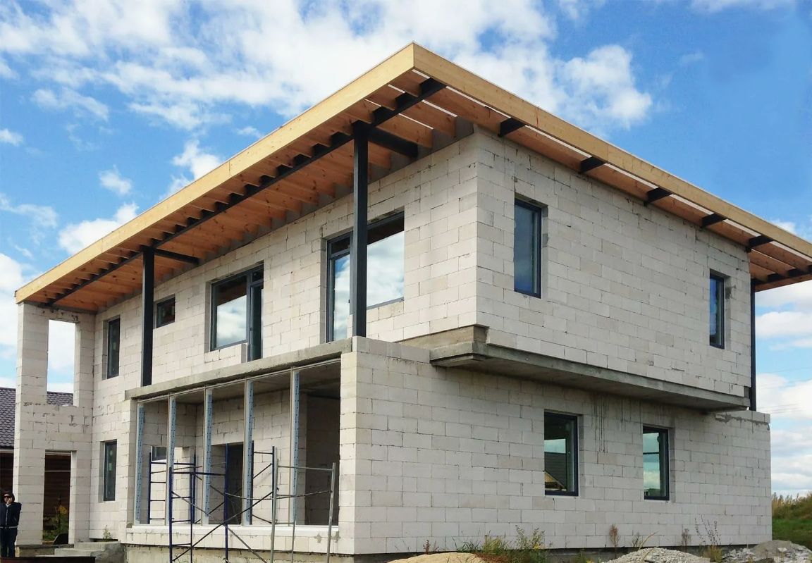 Двухэтажный дом из газоблока для всесезонного проживания.